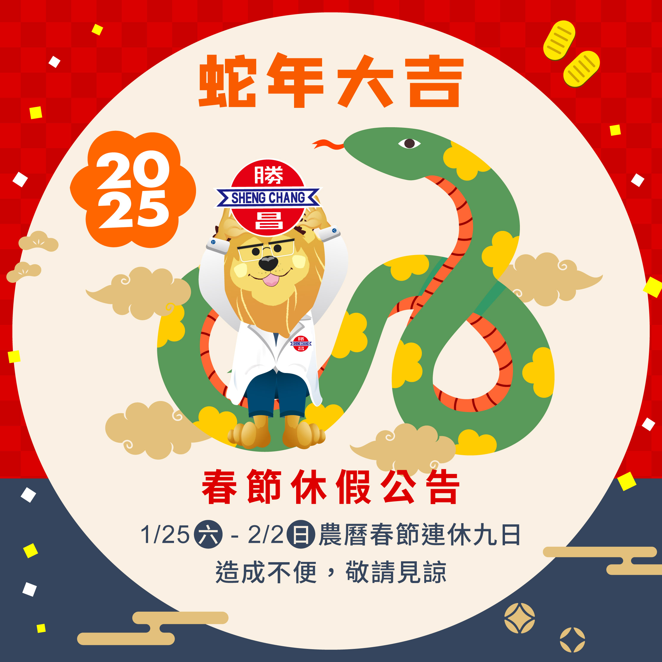【春節休假公告!】1/25(六)-2/2(日)連休九日